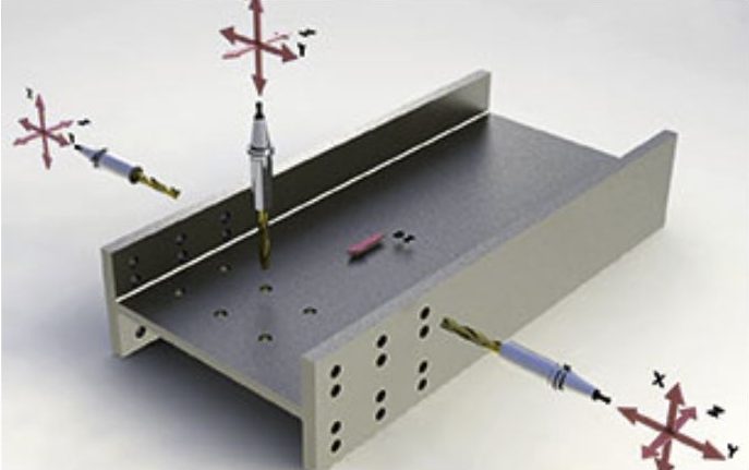 Koneessa on kolme porausyksikköä: yksi pystysuuntainen ja kaksi vaakasuuntaista, jotka mahdollistavat profiilien poraamisen kolmelta sivulta ilman uudelleenasettelua.