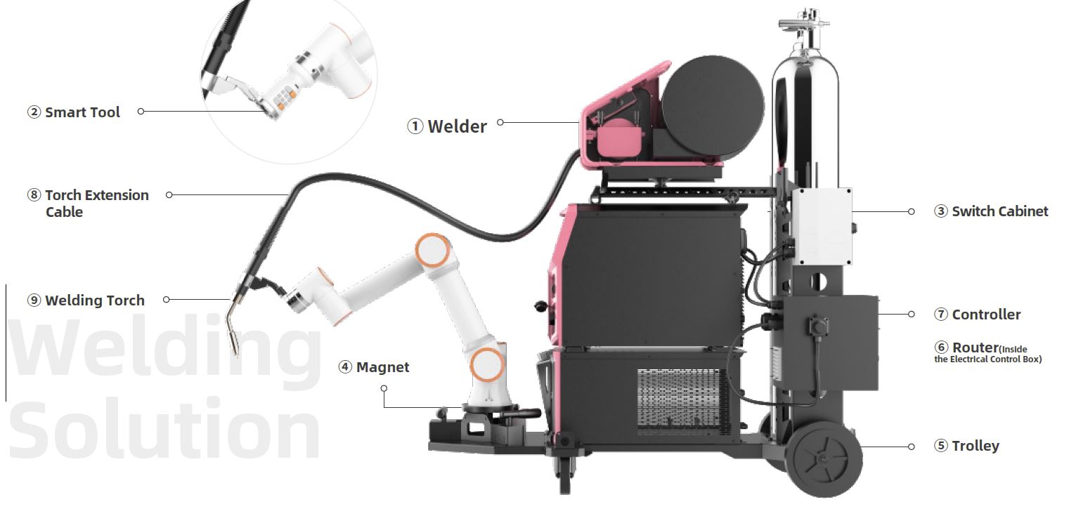 ⑤Trolley – kuljetusvaunut, voidaan siirtää hitsauskohteesta toiseen